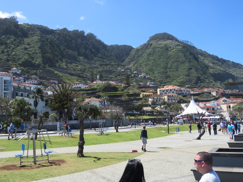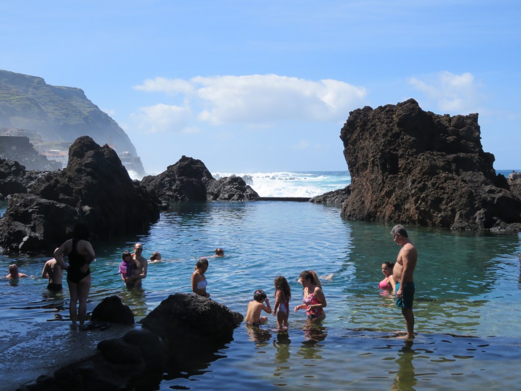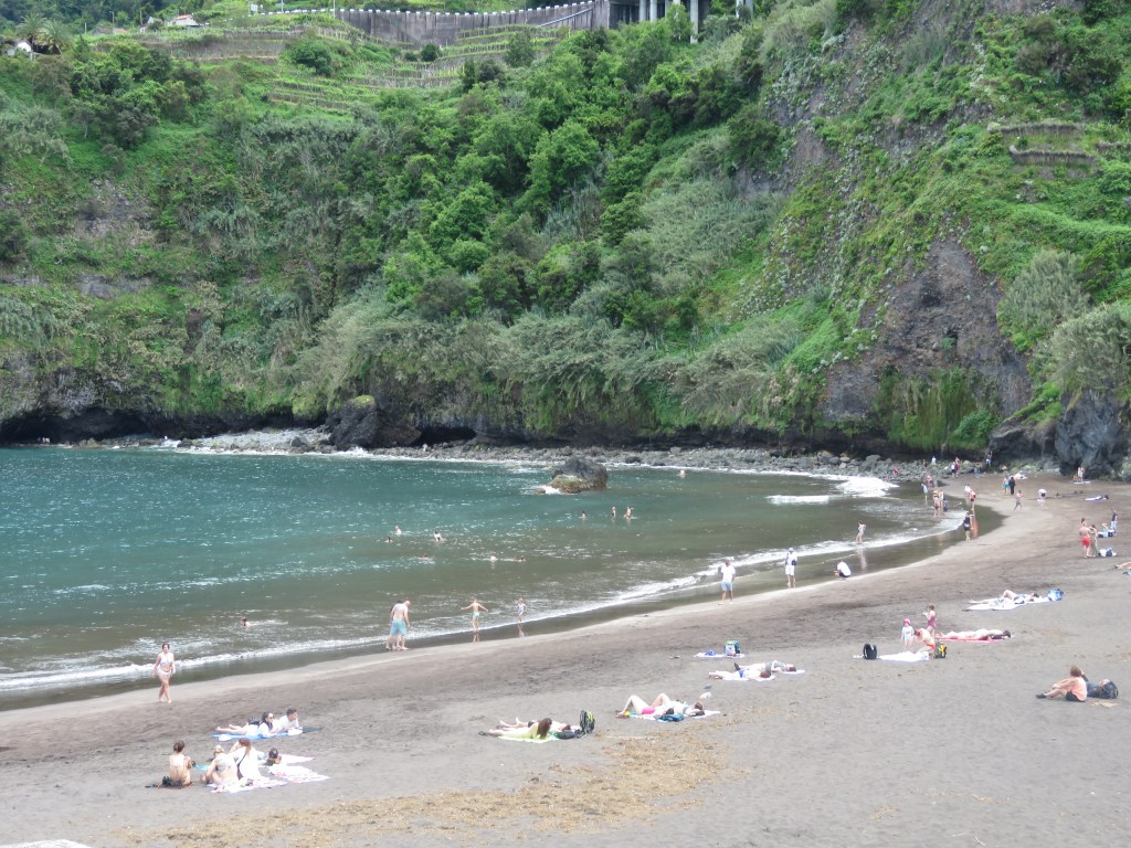 Seixal is a natural black sand beach in between Sao Vicente and Porto Moniz. It has a one way system for traffic. It can be difficult to find parking at busy times and holidays. However, it’s well worth a look. There’s a restaurant at the bottom near the beach and public toilets. It also has a lagoon that fills with sea water at high tide.