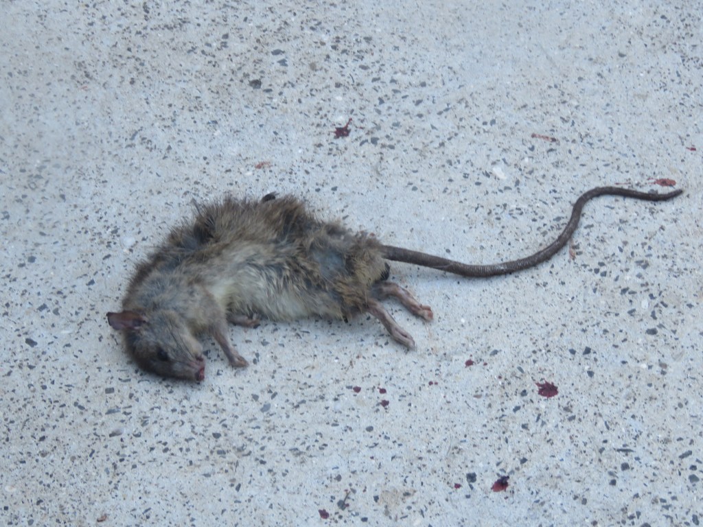 At least he eats healthily, he’s not a sewer rat. He looks a little tatty were the dogs were entertaining him. I’m surprised Smokey didn’t eat him.