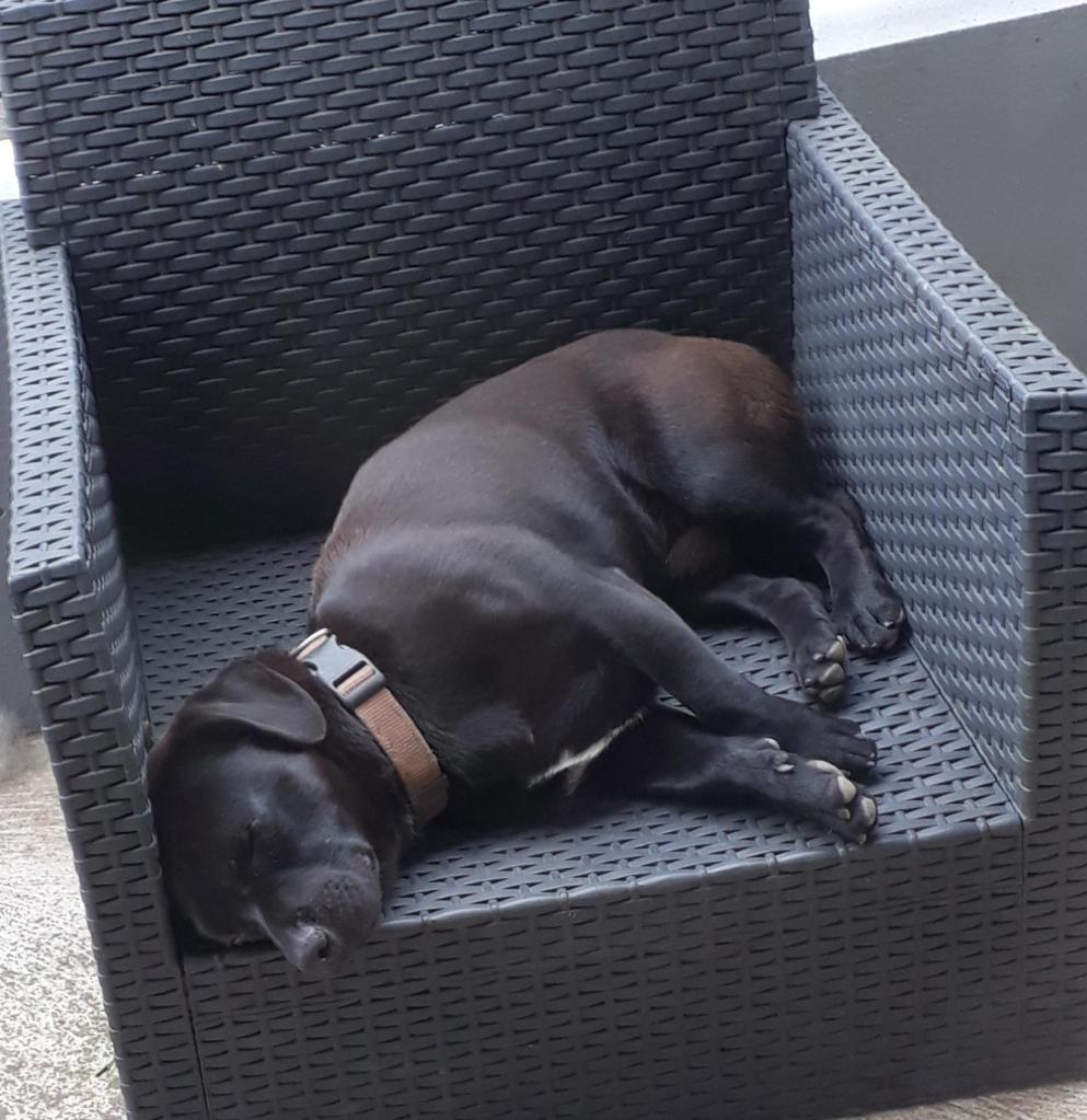 Maria can lie there all day. She will always sit in the sun while we’re out and loves to sunbathe when off work.