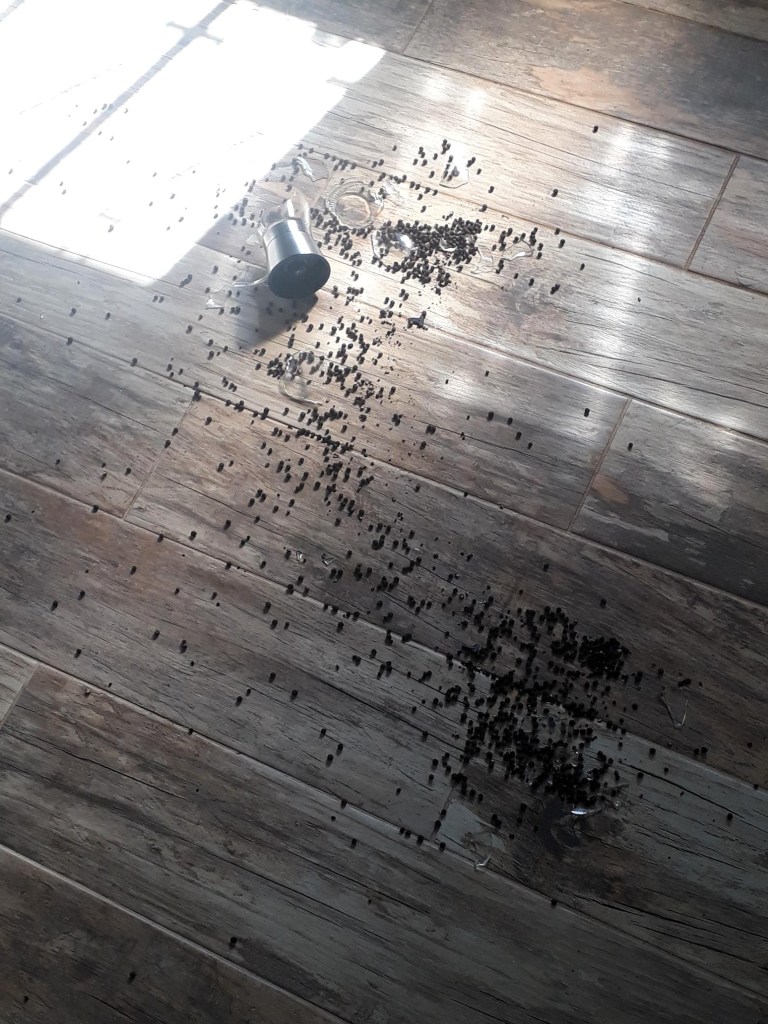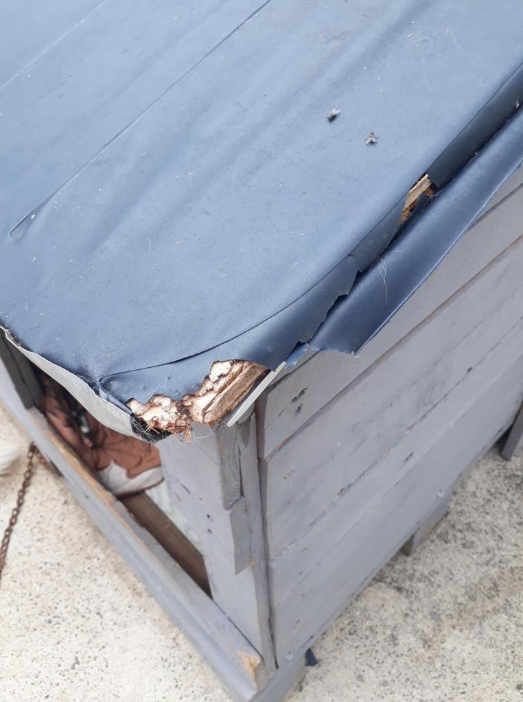 I asked them both “WHO DID THIS”. Bandit wandered off. Smokey lay down and looked at me as if to say “IT WASN’T ME.” He should have looked in a mirror first.